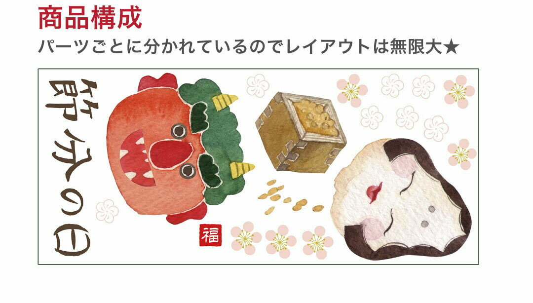 節分☆ シール式ウォールステッカー 節分 ウォールステッカー 飾り 30×30cm Ssize シール式 装飾 鬼 福 恵方巻 豆まき 鬼は外 福は内 壁紙 はがせる 剥がせる カッティングシート wall sticker 雑貨 ガラス 窓 DIY 016773