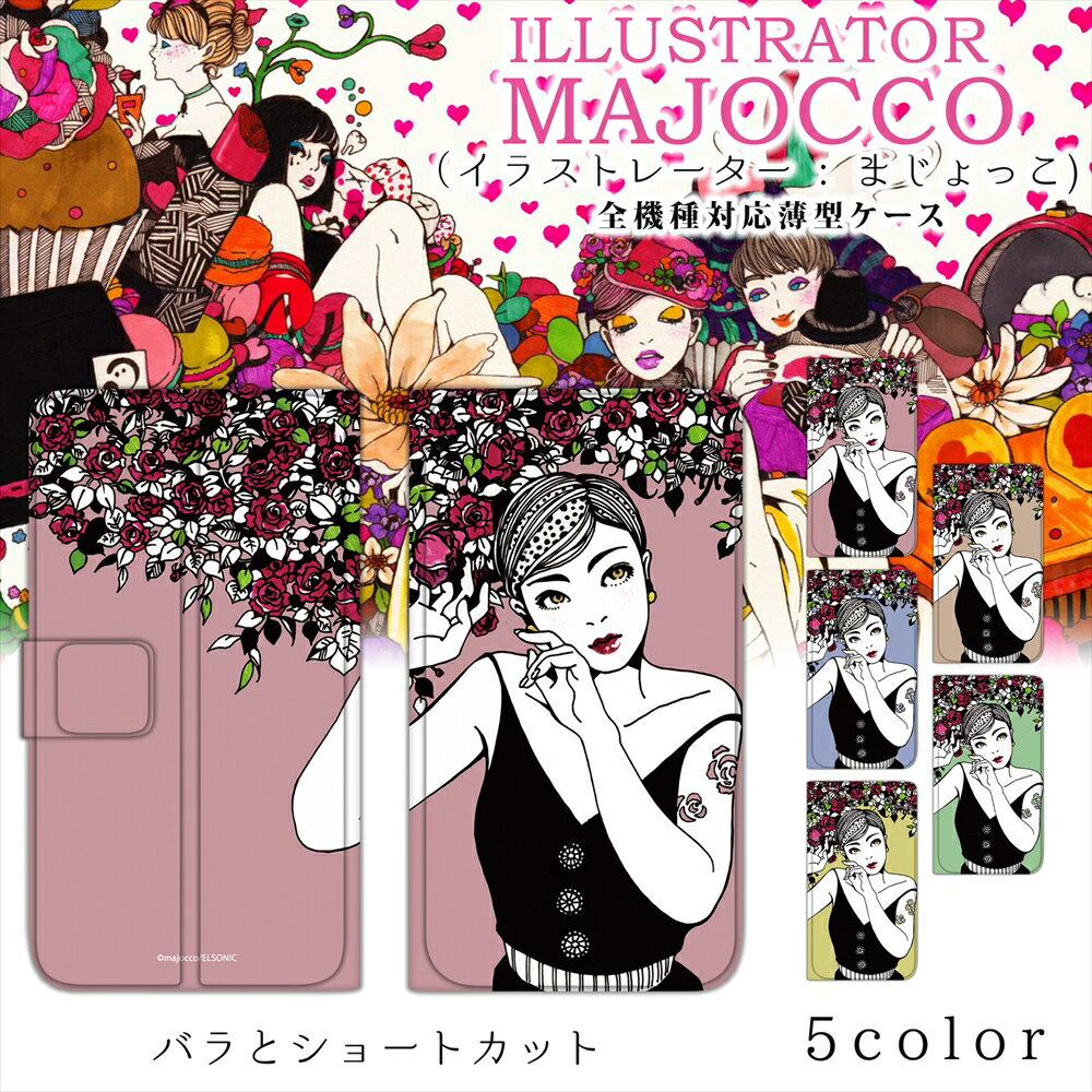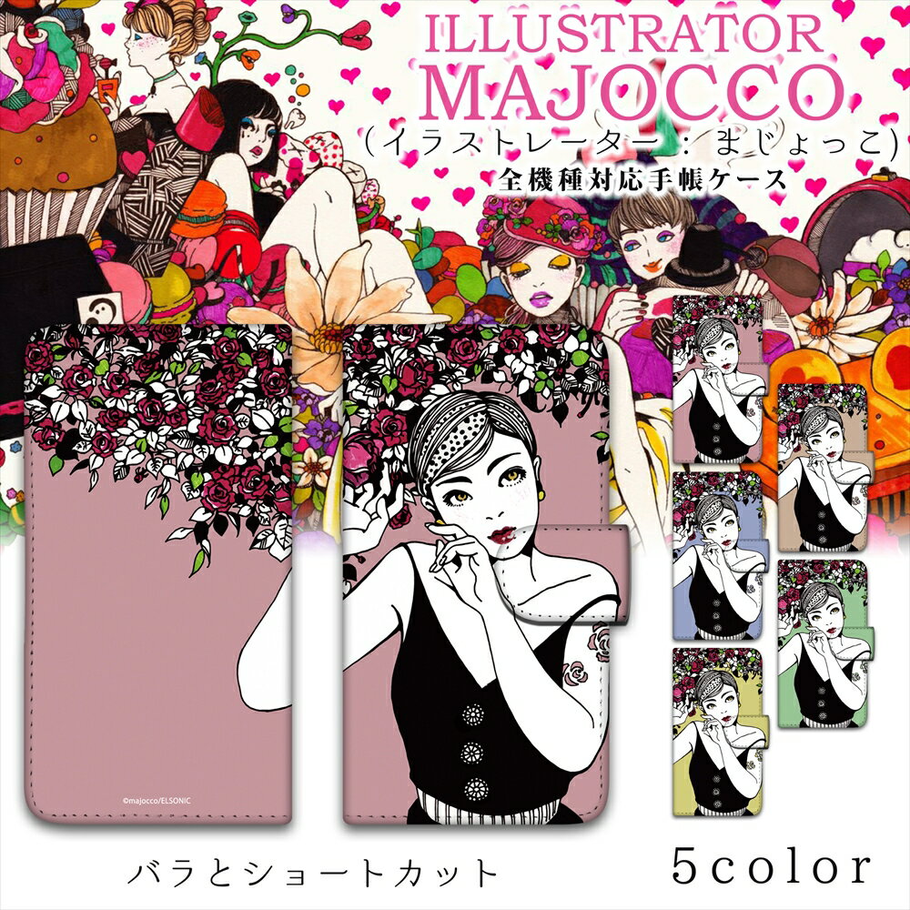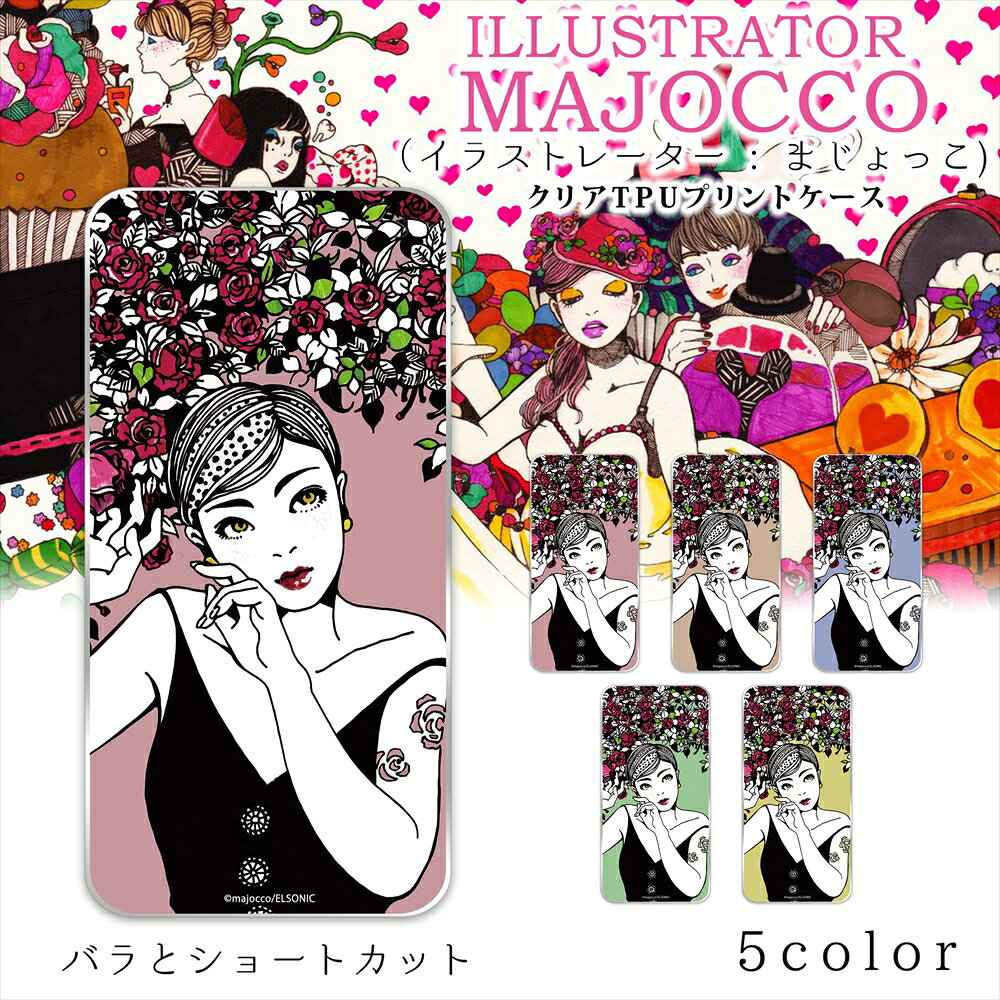 スマホケース 全機種対応 majocco クリア ハード プリントケース バラとショートカット iPhoneXS Max iPhoneXR Xperia xz2 Galaxy s9 AQUOS R2 huawei ZenFone Max Plus らくらくスマホ 携帯 ケース カバー