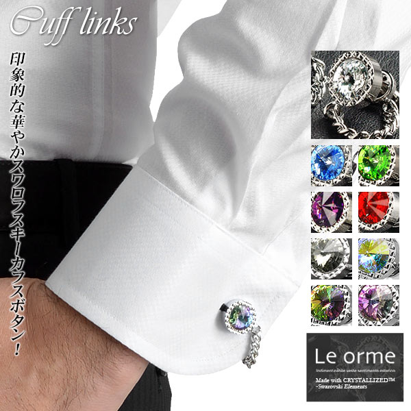 カフス【選べる24色】SWAROVSKI CRYSTAL CUFFLINKS スワロフスキークリスタルカフス【送料無料】【カフスボタン カフリンクス】【無料ラッピング】