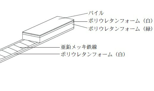 【形状・構造及び原理等】亜鉛メッキ鉄線をポリウレタンフォームで被覆し、肌面にパイルを貼り付けた製品です。